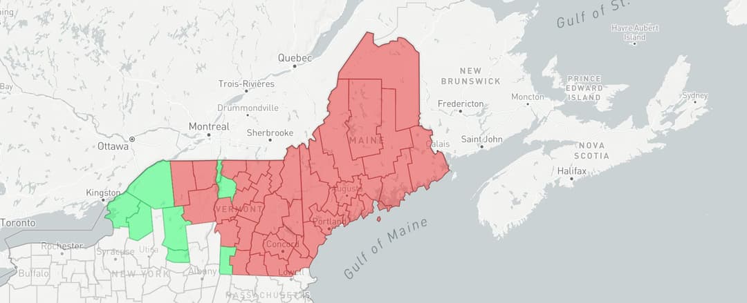 Since TDS and UScellular announced their intention to explore 'strategic alternatives' in August, many have questioned the feasibility of a tier 1 carrier acquiring their spectrum. This is a complex issue, but Airwave offers the tools needed to analyze it. Consider the feasibility of Verizon acquiring USCellular. Such an acquisition is certainly possible, though there are many areas where Verizon would face challenges. For example, in northern New England, Verizon is below all three screen thresholds without UScellular’s spectrum.
